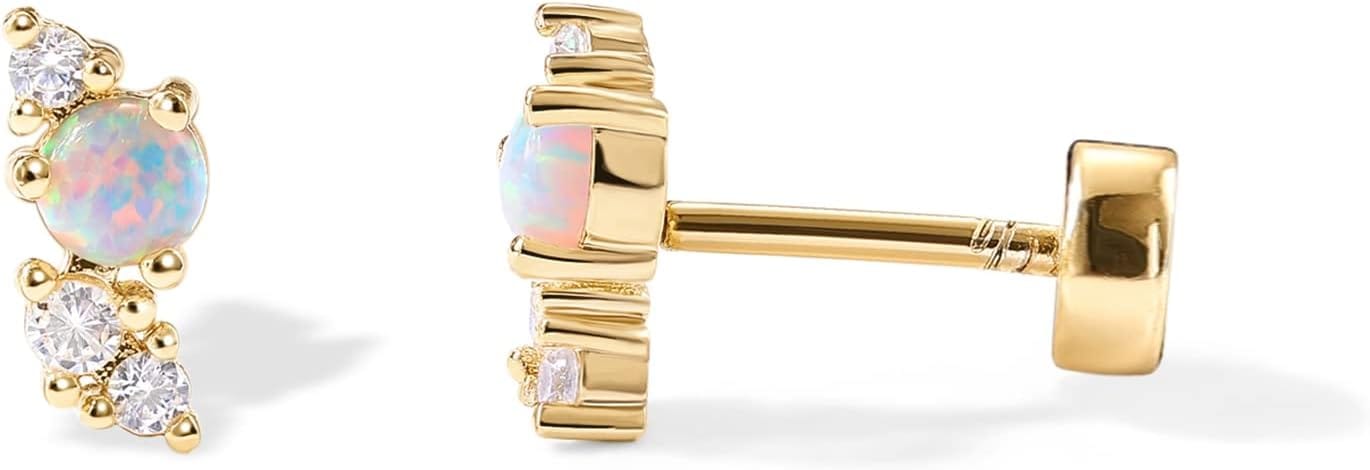 PAVOI offers a unique blend of elegance and sustainability with their 14K Gold Plated Solid 925 Opal Flat Back Earrings. These dainty 3x6mm stud earrings are the perfect accessory for both daytime and evening wear. Crafted with precision, they feature a 14K Yellow Gold plating and a solid 925 post that screws into a flat back disc for a secure fit.