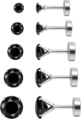 The internally screw-threaded 20-gauge ear posts make them easy to wear, while the 5mm stainless steel flat back ensures they stay in place. These versatile earrings can be used as sleeper earrings, cartilage stud earrings, or everyday accessories. Their dark, titanium finish adds a unique touch to your jewelry collection.