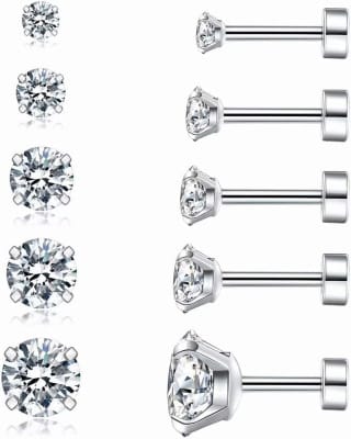 Each set includes five pairs of earrings, ensuring that you have options to match your daily outfits. The 16G gauge offers a balance of durability and delicacy, suitable for various piercing types. The shimmering cubic zirconia (CZ) stones, ranging from 3mm to 7mm, provide a touch of elegance and sparkle to your look. Whether you prefer a subtle glimmer or a bold statement, these earrings have you covered.