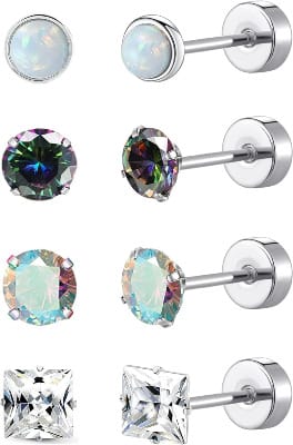 In one order, you receive a set of four pairs of earrings, each with a unique design. From elegant rainbow Cubic Zirconia to opal, moon, star, butterfly, heart, and geometric flat-back earrings, these tiny flat-back earrings cater to various occasions, whether it's a workday, a party, or casual wear.