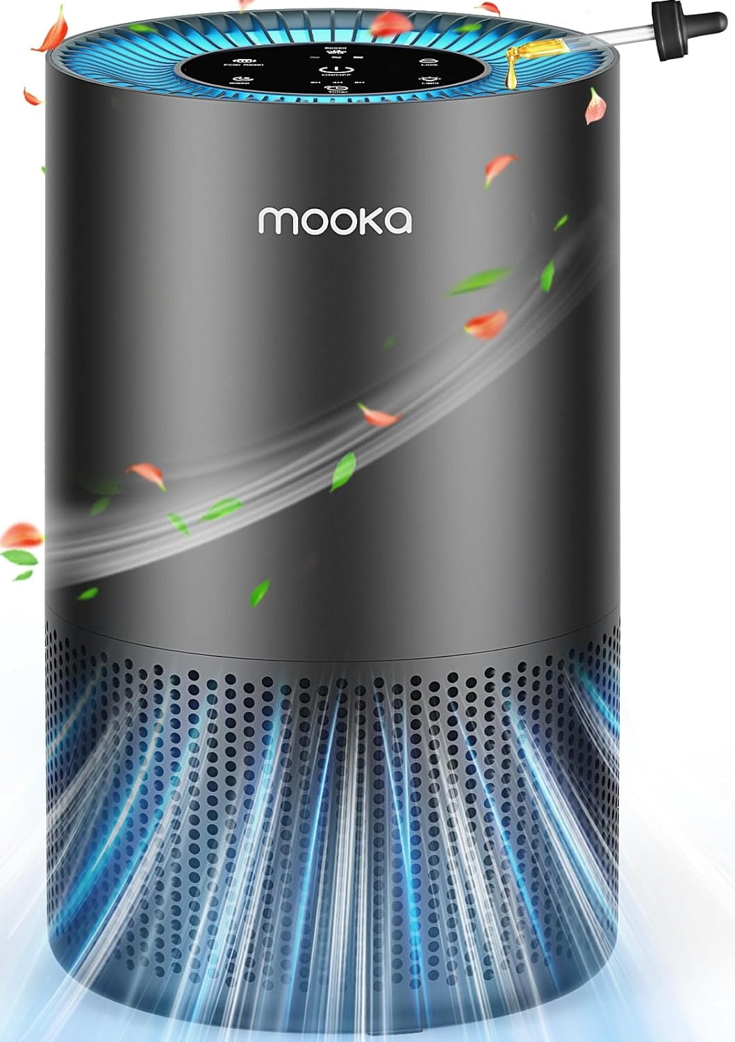 MOOKA H13 True HEPA Air Purifier Cleaner with 360° Air Inlet, Fragrance, 13dB Air Purifier for Bedroom Wildfire Smoke Pet Dust Pollen (Black)