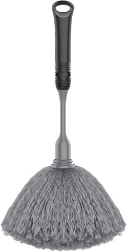 - The fluffy microfiber head efficiently collects dust, covering a sizable cleaning surface without moving it around.