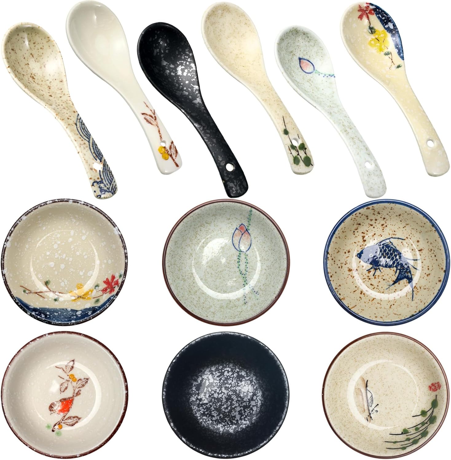 - This comprehensive set includes six soy sauce bowls and six Asian soup spoons, providing enough dinnerware for every occasion.