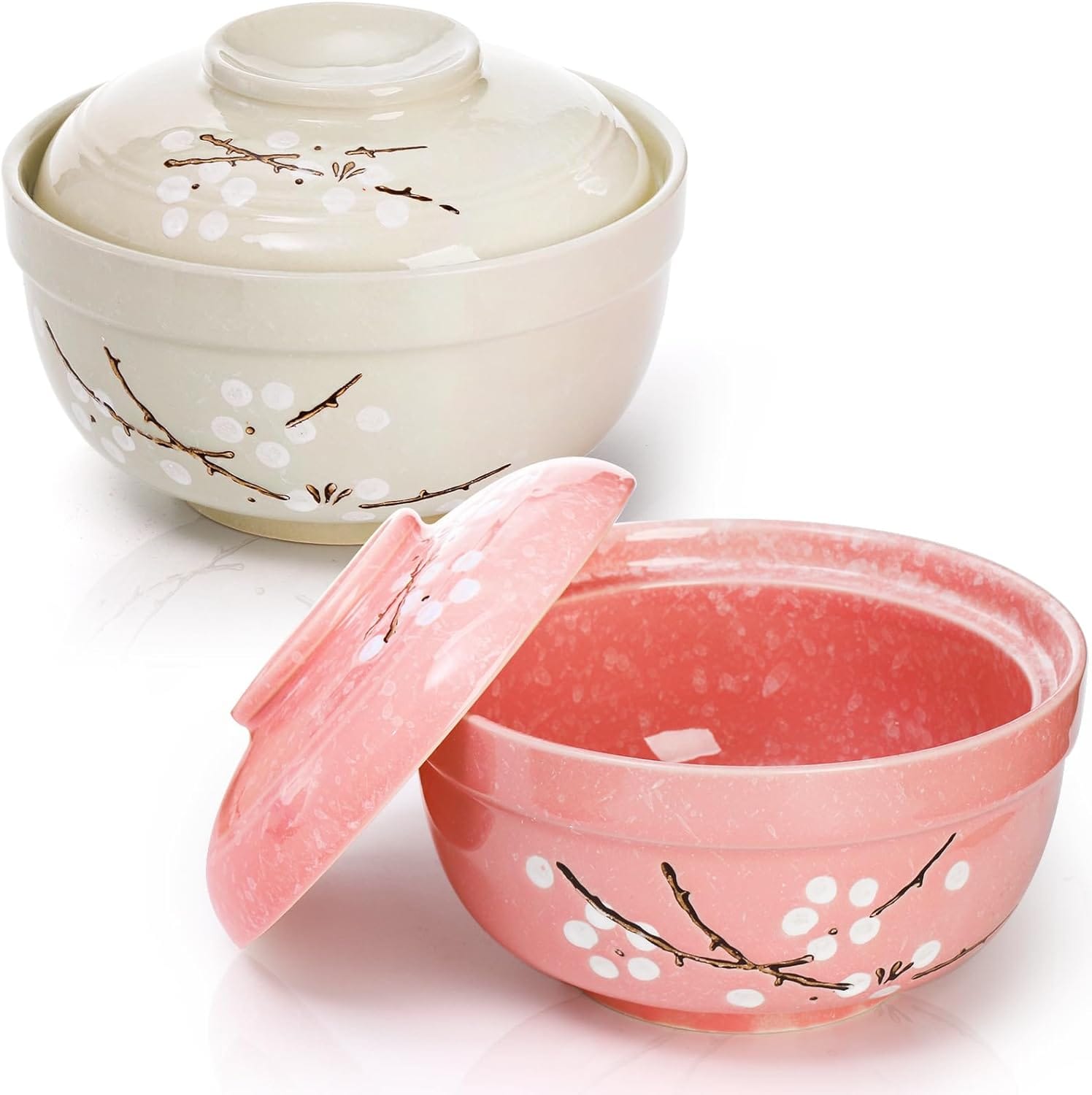 These thick, robust, and thermally resistant bowls are made of excellent ceramic, offering long-term durability. The comfortable and safe ceramic surface makes eating comfortable and secure, with no risk of sharp edges. The elegant and traditional Japanese aesthetics of these bowls, with their lovely plum blossom design, will enhance your eating experience.