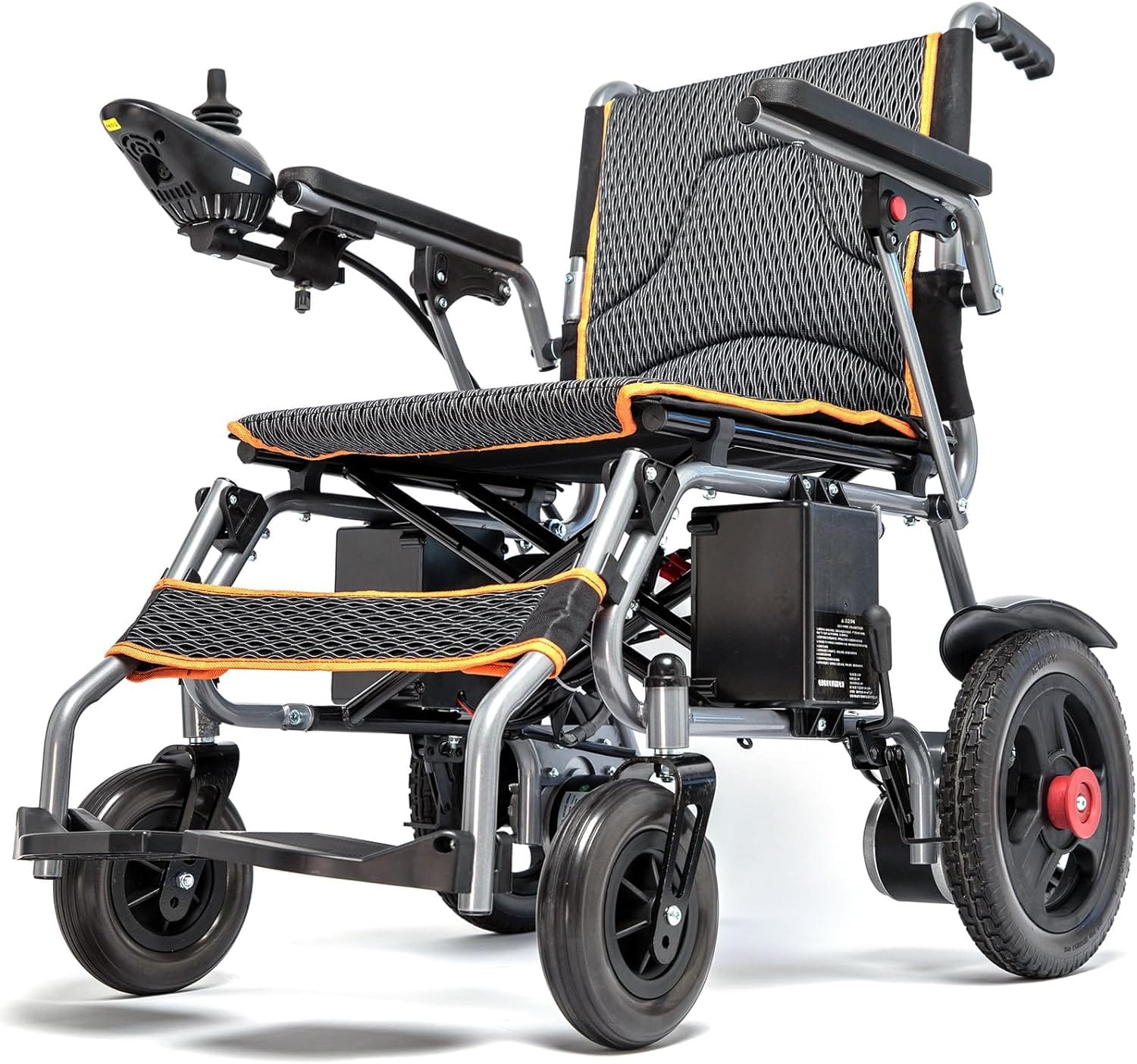 The 360° joystick is easy to use and sensitive, making it easy to maneuver in confined spaces. It also has a remote control for family members to help you. Shock-absorbing tires, a ventilated cushion, a backrest, and flip-up handrails for simple access all put comfort first.
