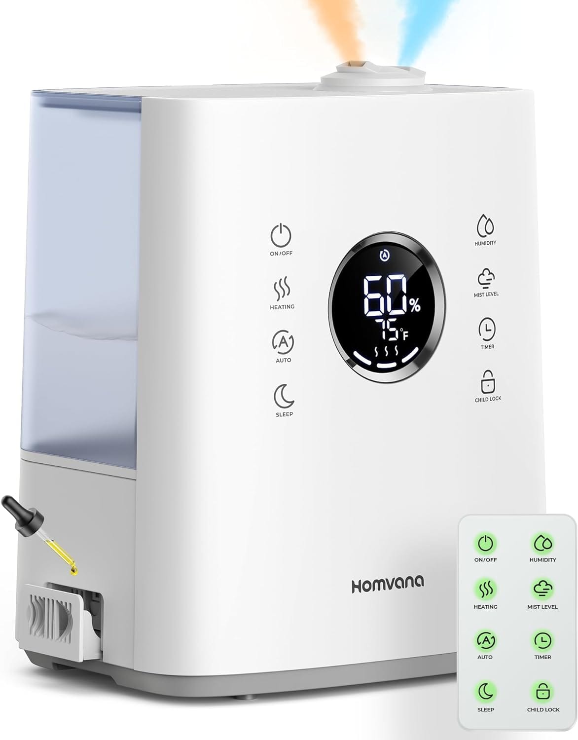 Essential Oil Compatible: The Homvana humidifier also functions as a vaporizer, allowing for the use of essential oils for added benefits and a pleasant aroma throughout your living space.
