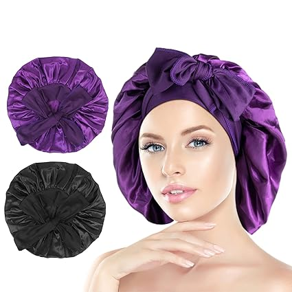 Enhance your beauty sleep routine with the luxurious 2Pcs Silk Bonnet for Sleeping, designed to pamper your hair while you rest. These bonnets offer a gentle touch and a silky-smooth feel, ensuring your locks remain tangle-free and protected throughout the night.
