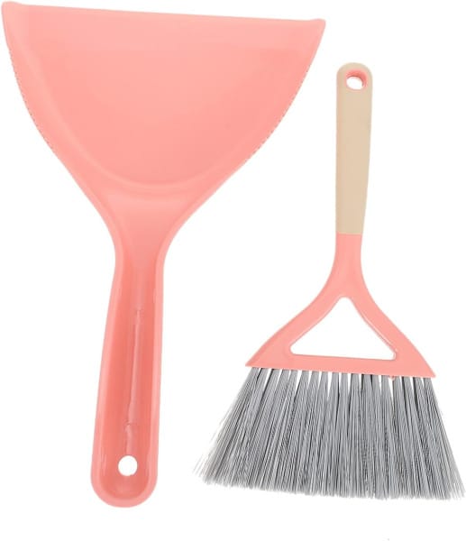 Simply rinse the Pink Broom's bristles with water and mild soap. For the Dust Pan, wipe it clean with a damp cloth. Ensure both are thoroughly dry before storage.
