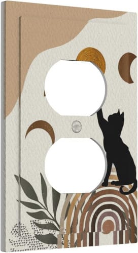 The Funny Cat Moon Boho 1 Gang Outlet Covers for the Mid-Century Any home décor arrangement would benefit from the lovely Wall Plate Decorative Duplex Light Switch Cover. These wall plates, which come in various sizes to accommodate different switching configurations, are composed of polycarbonate thermoplastic material, providing elasticity, flexibility, and durability.