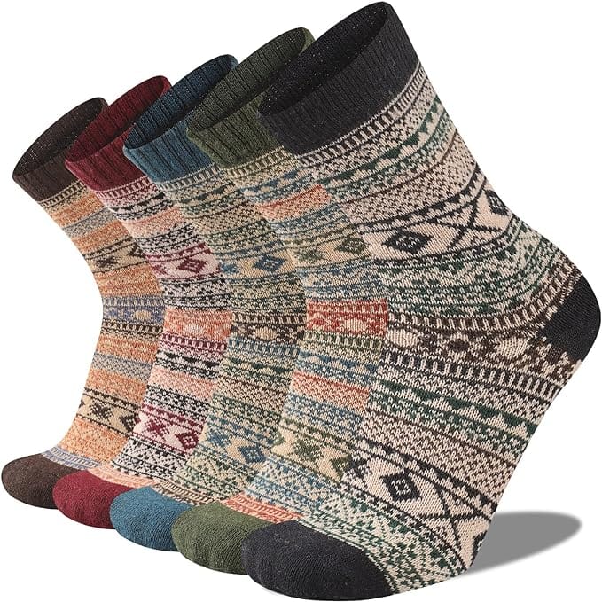 Versatile for various settings, from everyday wear to outdoor activities like hiking or work, these socks are a reliable choice. Their vibrant colors and patterns make them a fashionable gifting option for Christmas, birthdays, or any occasion. With five pairs in a package, Heatuff Men's Warm Wool Socks are an ideal present for loved ones, offering both style and comfort in chilly climates.