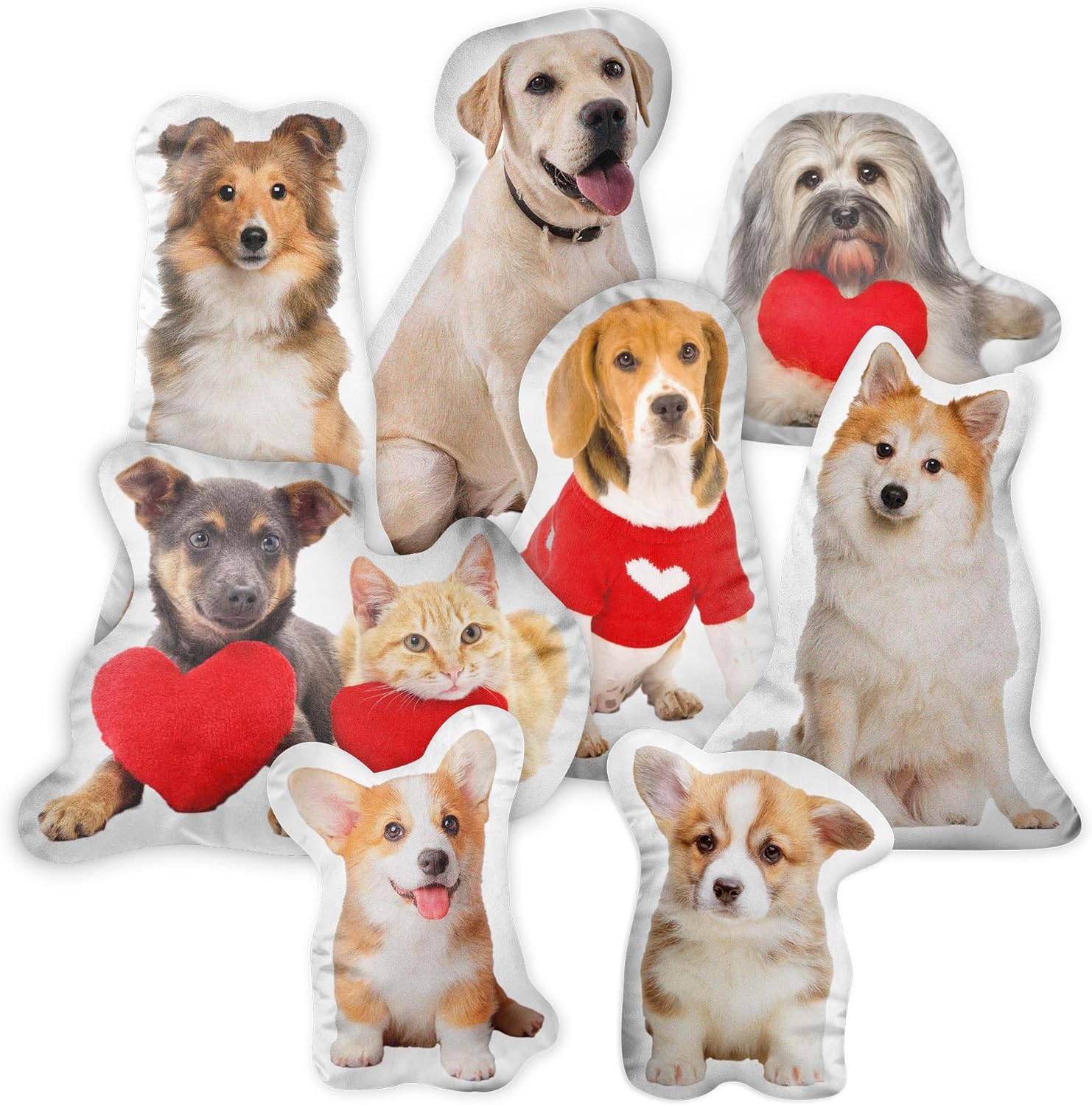 Personalized Pet Photo Pillows, 3D Printing Dog Cat Shaped Pillow for Pet Lover Gifts Bedding Decoration Birthday Valentine's Day Christmas Height 8 Inch