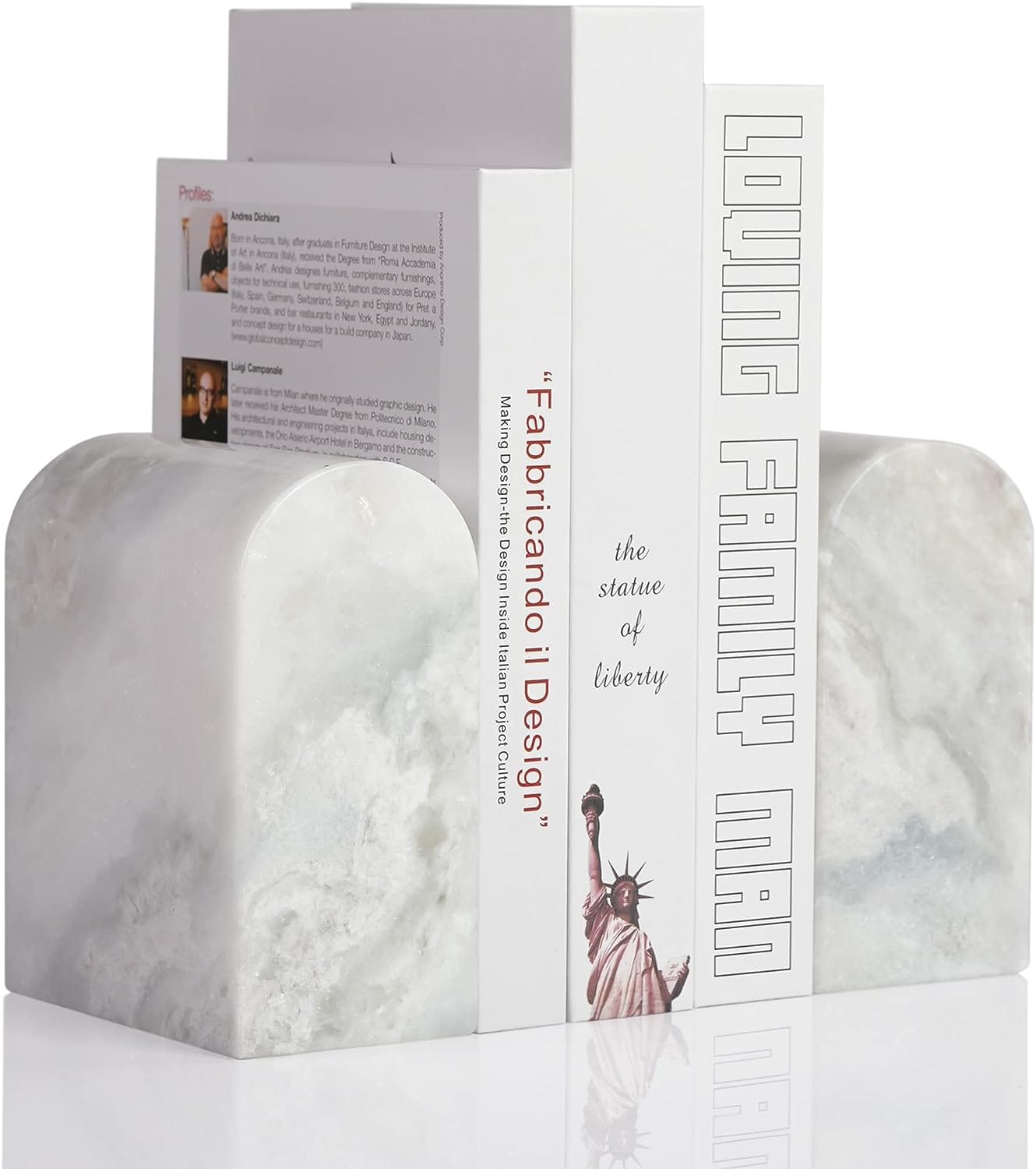 Decorative Book Ends, 7lbs Heavy-Duty Marble Book Holders, Bookshelf Apartment Decor for Normal Books/CD/Video Games(Bianco Fiora)
