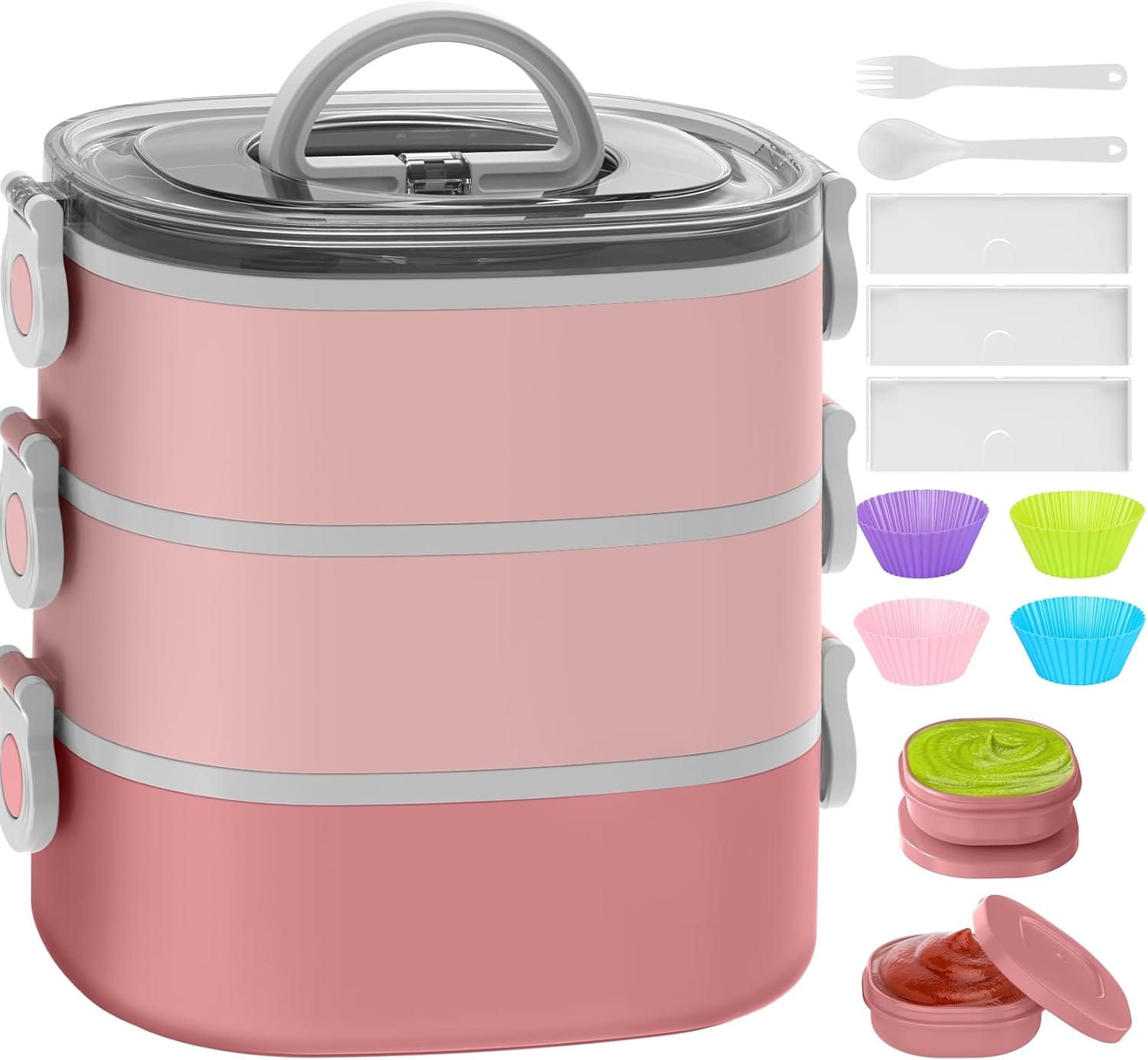 Adult Lunch Box,3 Stackable Bento Lunch Containers for Adults
